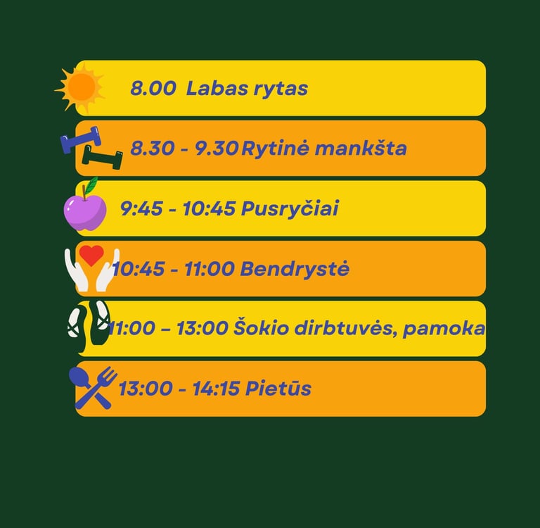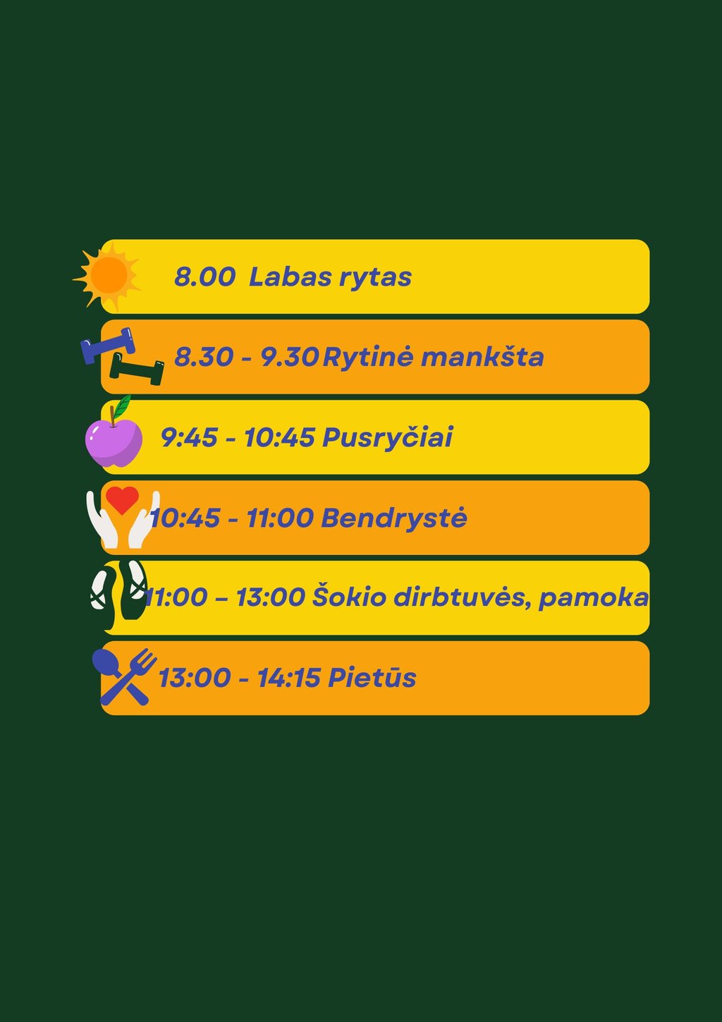 ★ Reguliarus maitinimas tris kartus per dieną – pusryčiai, pietūs, vakarienė;